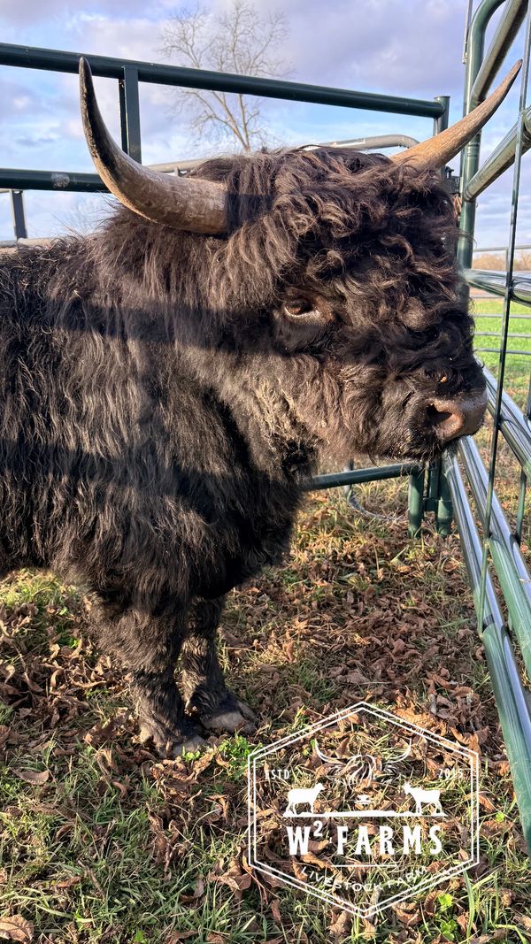 Drift is one of our future herd sires and he is a high percentage Highland who is chondro positive. He came to us from the prestigious RCM Miniature Cattle Company located in Colorado. Drift has an amazing disposition and loves to be brushed.